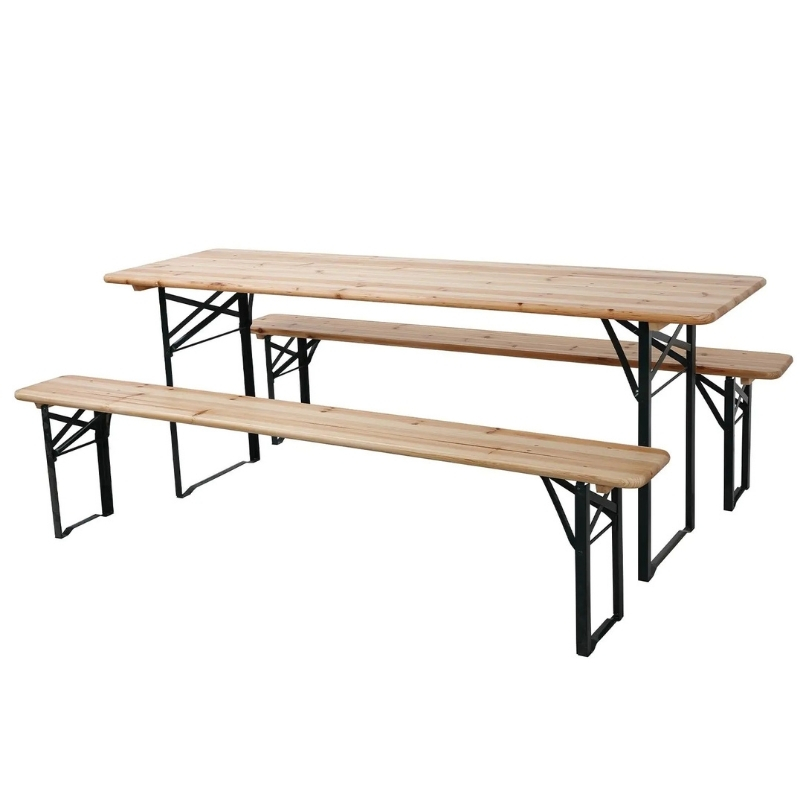 Deze prachtige bierbank set is de perfecte aanvulling voor elke sociale gelegenheid, of het nu gaat om een tuinfeest, een evenement in de buitenlucht, of een gezellige bijeenkomst. Met een lengte van 220 cm en een breedte van 50 cm biedt deze set ruimte aan meerdere gasten. Het naturelkleurige hout gecombineerd met zwarte metalen accenten zorgt voor een stijlvolle en tijdloze uitstraling. De set is vervaardigd uit hoogwaardige materialen, wat zorgt voor duurzaamheid en stabiliteit. Het gladde oppervlak maakt schoonmaken eenvoudig en de banken zijn eenvoudig op te bergen dankzij het slimme opklapmechanisme.