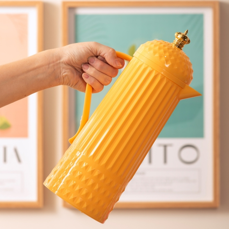 De thermoskan Kroon houdt je drankje warm of koel en is daarmee zowel praktisch als stijlvol. De fles heeft een opvallende zomerse kleur en een leuk accent in de vorm van een gouden kroontje op de dop, wat het een echt statement maakt. Perfect voor een zonnige dag in de tuin!